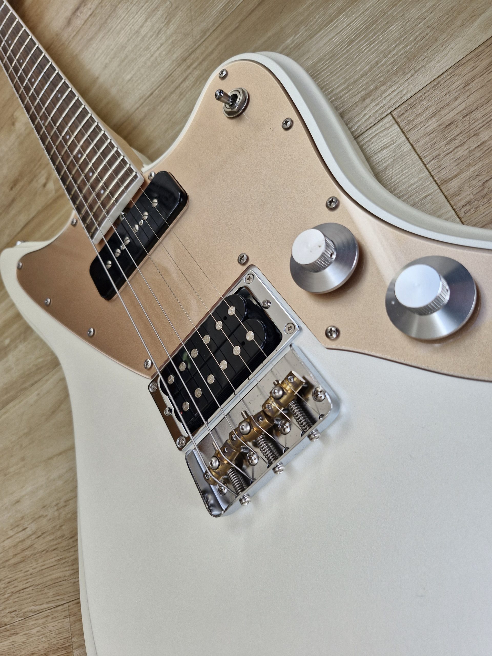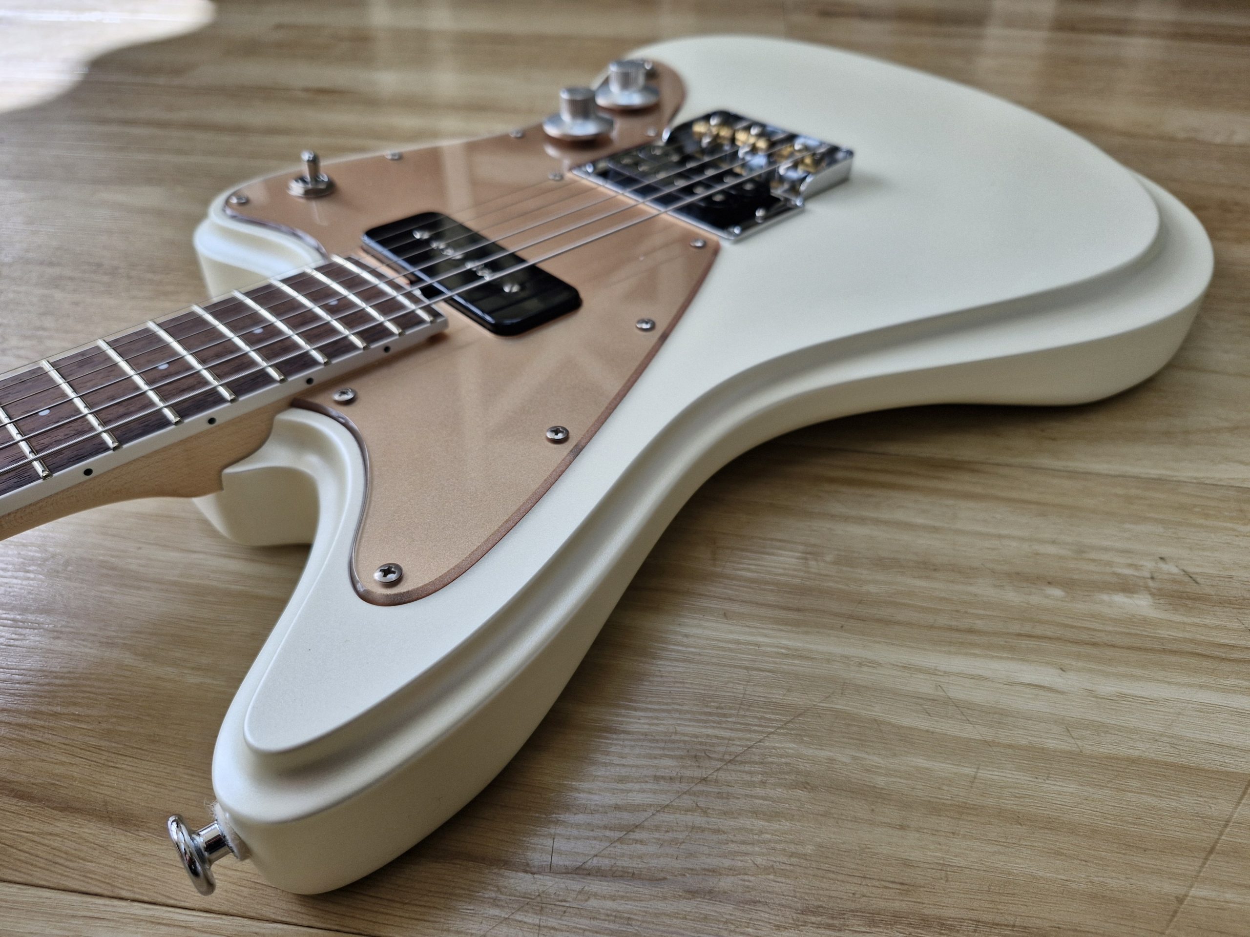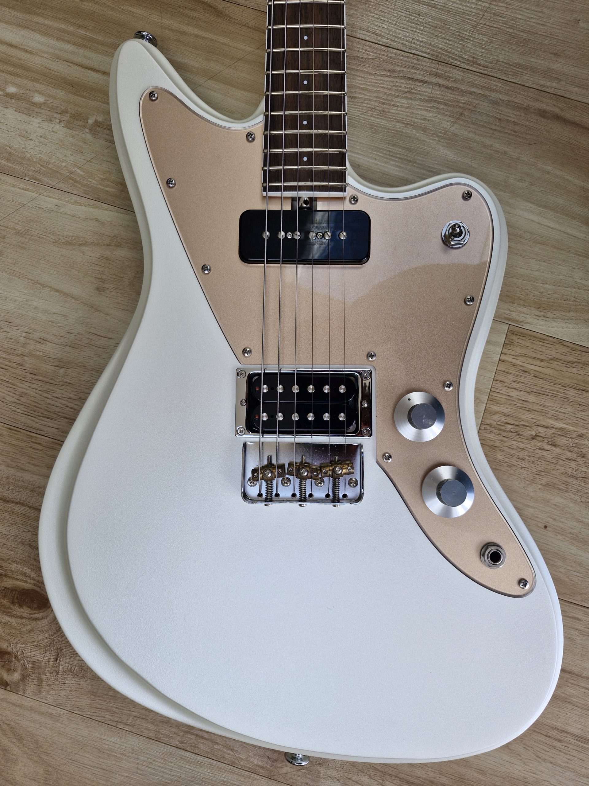- Handmade pickups: Mojotone Classic P-90 in the neck, Mojotone LEVEL HEAD Humbucker in the bridge — versatile, rich, and dynamic tones.